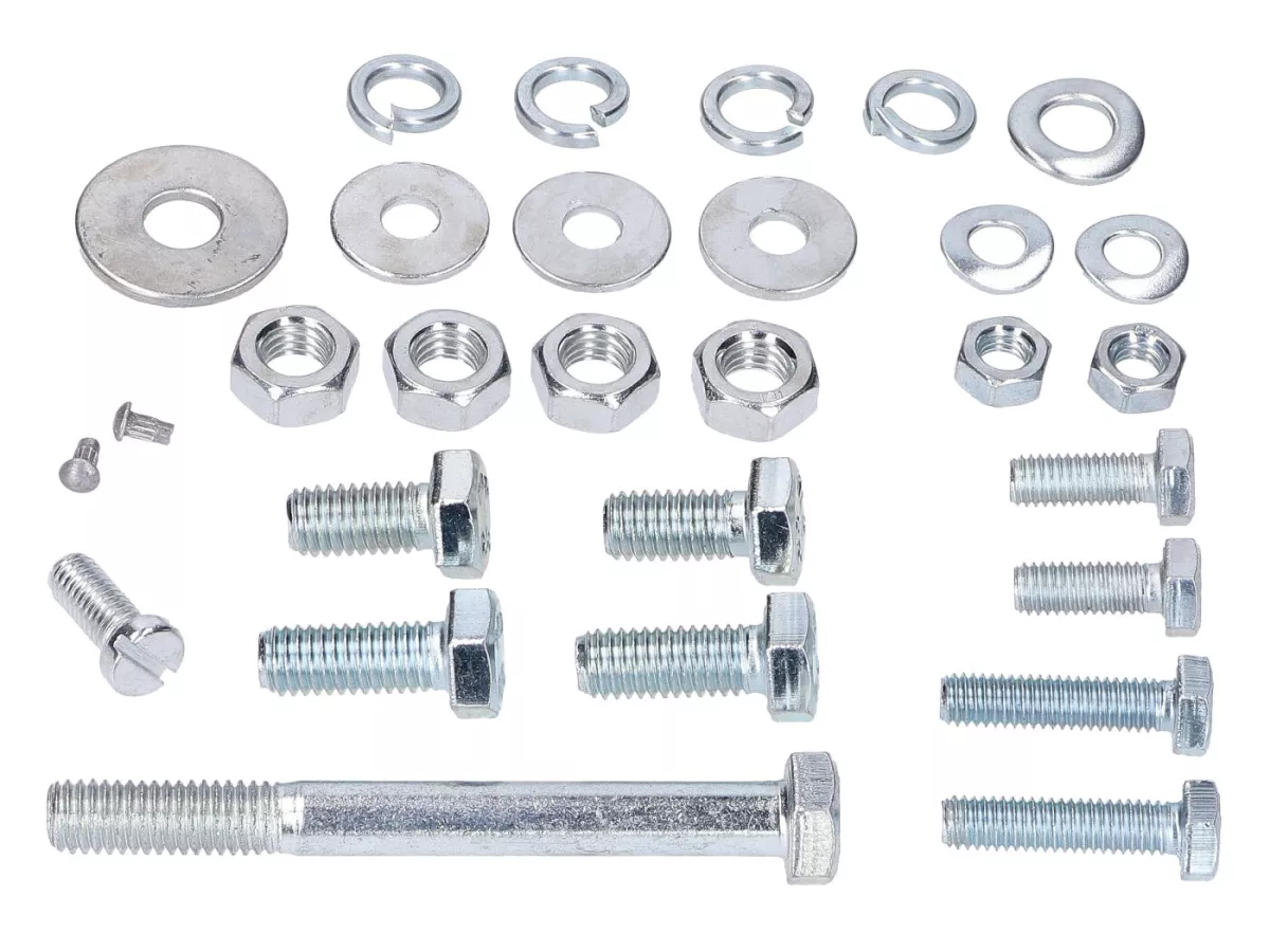 Ein Satz Normteile / Montageteile für Rahmen-Obergurt, Stützstreben, Unterzugstreben, Sitz und Tank passend für Simson S50, S51, S70.