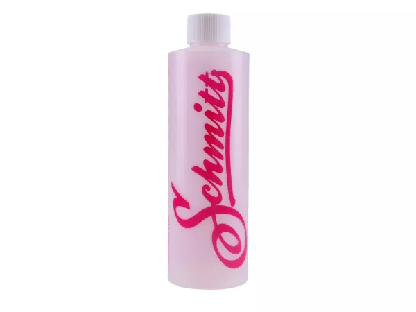 Deine Schmitt Pre- Mix Flasche mit abgestimmter Skala für 2-Takt Mischöl - mit Aufdruck in Pink. Immer dabei im Rucksack, Gepäckfach oder Deinem Turnbeutel.