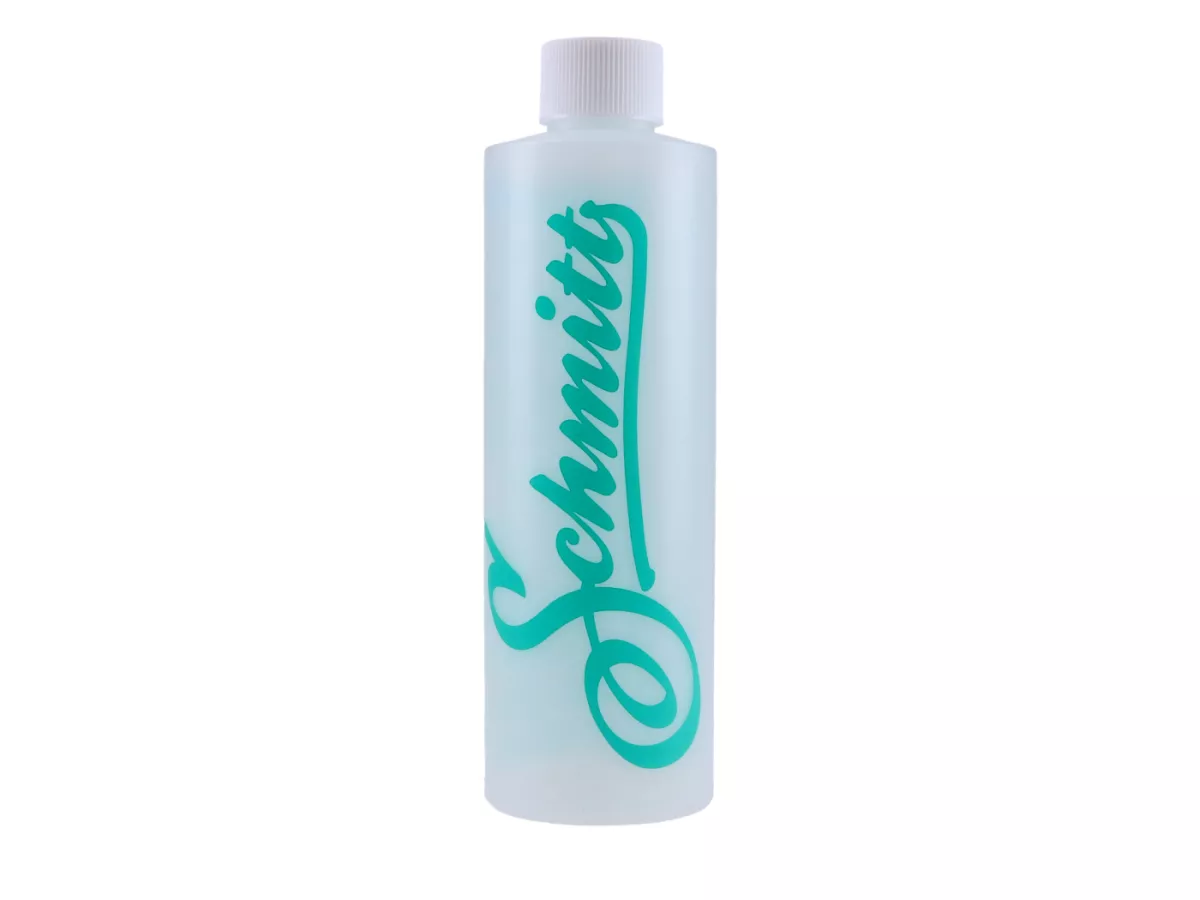 Deine Schmitt Pre- Mix Flasche mit abgestimmter Skala für 2-Takt Mischöl - mit Aufdruck in Türkis. Immer dabei im Rucksack, Gepäckfach oder Deinem Turnbeutel.
