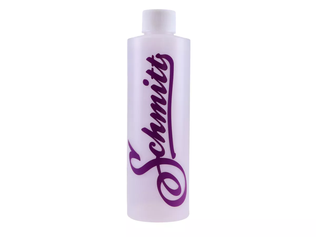 Deine Schmitt Pre- Mix Flasche mit abgestimmter Skala für 2-Takt Mischöl - mit Aufdruck in Violett. Immer dabei im Rucksack, Gepäckfach oder Deinem Turnbeutel.