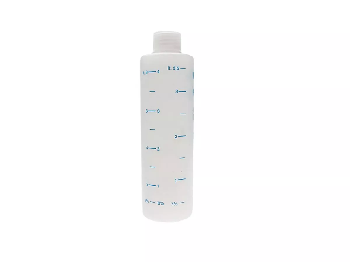 Praktische Ölmessflasche von Polini für unterwegs oder die Werkstatt. Mit der Skala kann das passende Mischungsverhältnis leicht eingestellt werden. Nicht nur für 2-Takt Piloten. Jede Art Flüssigkeit kann mit dieser Flasche abgemessen werden.