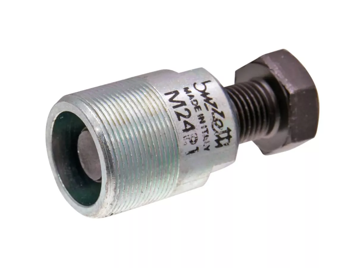 Buzzetti Polradabzieher in den Abmessungen M24x1,0 und mit Rechtsgewinde. Wird für Arbeiten an der Lichtmaschine, darunter liegenden Bauteilen und bei Kurbelwellen- und Lagerwechsel benötigt.