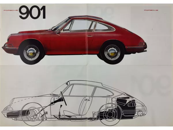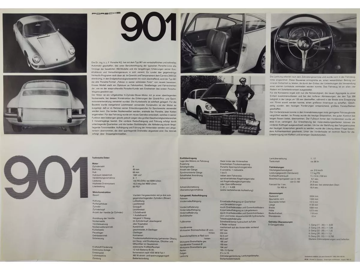 Verkaufsprospekt Sonderdruck, 30 Jahre Porsche 911, Porsche 901. Maße: DIN A4 zugeklappt, 590mm breit, 420mm hoch aufgeklappt. Restbestand nur solange Vorrat reicht.