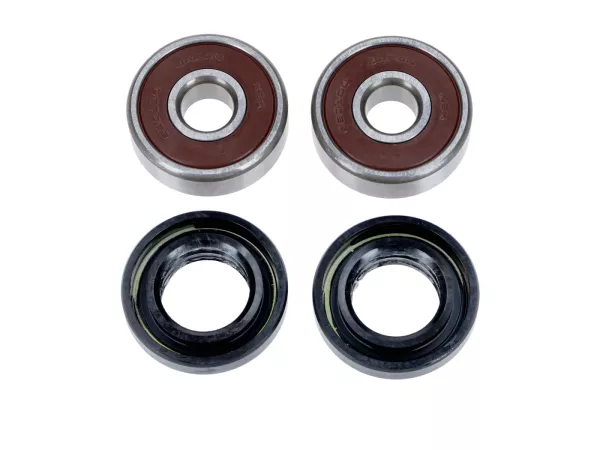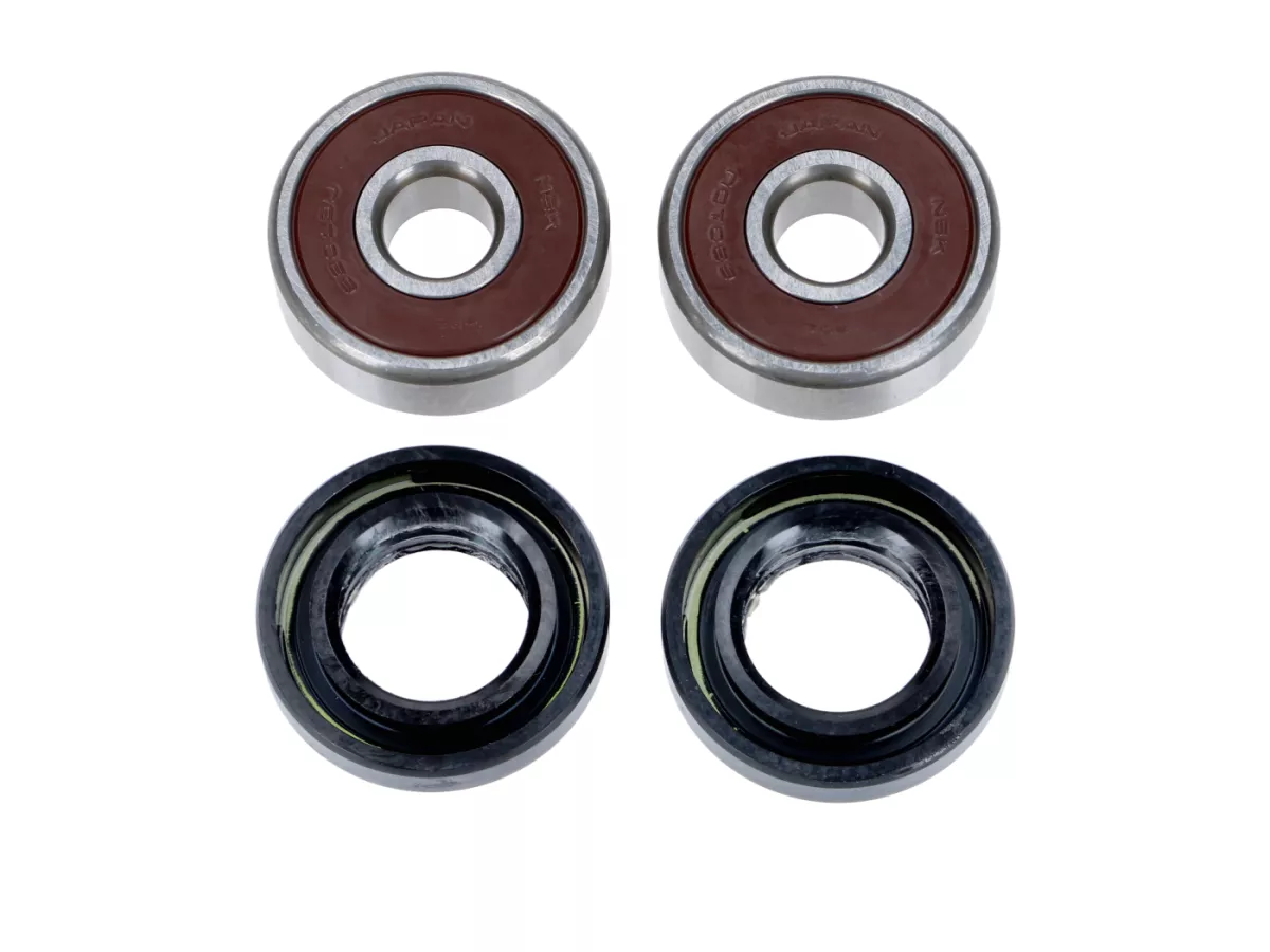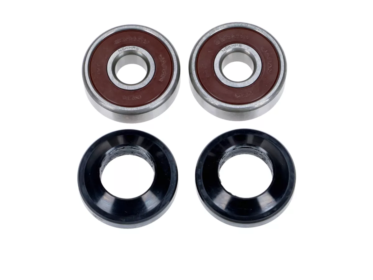 Dieser Radlager-Satz ist für die Radnabe von Honda-Modellen der MBX- und MTX-Baureihe geeignet. Die Ausführung als Komplettsatz erleichtert den Austausch der verschlissenen Radlager an Vorder- oder Hinterrad. Im Lieferumfang befinden sich zwei beidseitig abgedichtete NSK-Rillenkugellager sowie zwei Wellendichtringe.