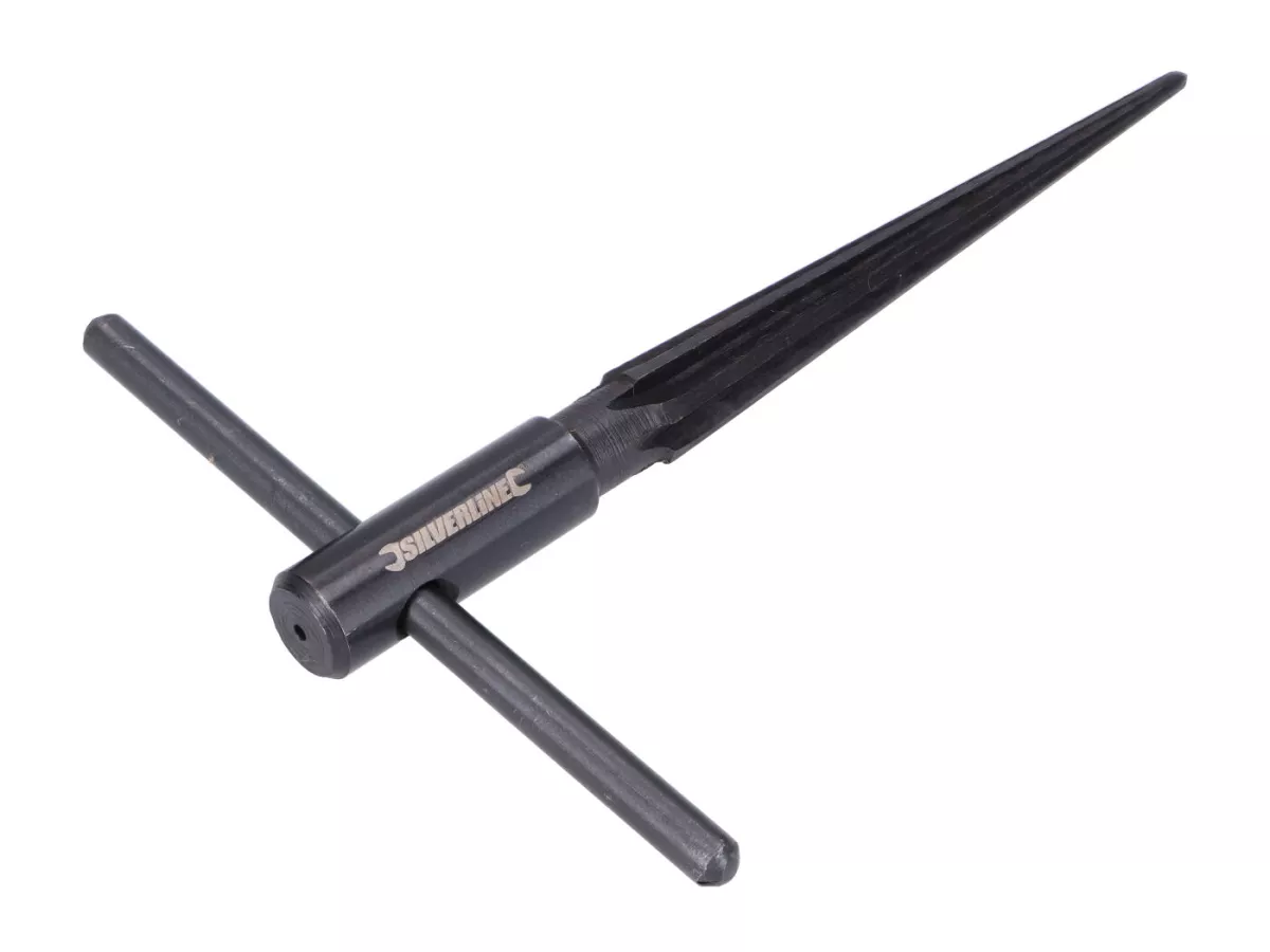 Praktisches Werkzeug zur Nachbearbeitung von Bohrungen. Insbesondere zum Nachbohren, Entgraten, Säubern und Glätten von Bohrungen geeignet. Die Kegelform der Reibahle verläuft von 3 auf 12mm. Um Platzproblemen vorzubeugen, kann der Griff leicht demontiert werden. Die Kegel-Reibahle besteht aus vergütetem Kohlenstoffstahl.