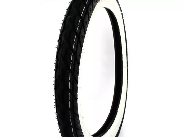 Kenda K 418 Touring Weisswand Reifen in der Größe 2,75 x 17 41P (2 3/4 x 17) Nylon Reifen mit E-Prüfzeichen, dadurch straßenzugelassen. Passend bei Kreidler Florett Eiertank RS RM TM RMC LF LH Super 4, Hercules MK K KX Ultra, Zündapp KS CS GTS C. Bis 150 km/h freigegeben. Ausgezeichnete Fahreigenschaften auf trockener und nasser Fahrbahn sowie sehr hohe Laufleistungen auch bei sportlicher Fahrweise. Aktuelle Ware, keine Altbestände.