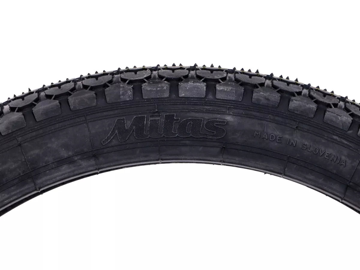 Mitas Reifen in der Größe 2 1/4 x 17, 39 J, verstärkt (Reinforced), passend für Kreidler, Zündapp, Hercules, Puch und viele andere Modelle. Alte Reifenbezeichnung 21 x 2,25, passend für 1,5 x 17 Zoll Felgen.