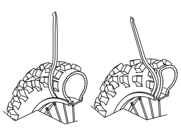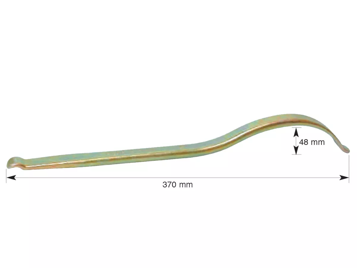Dieser gebogene Buzzetti Reifenmontierhebel eignet sich besonders bei der Verwendung von Moosgummi (Mousse), Tyre Balls oder steifen Offroad Reifen.