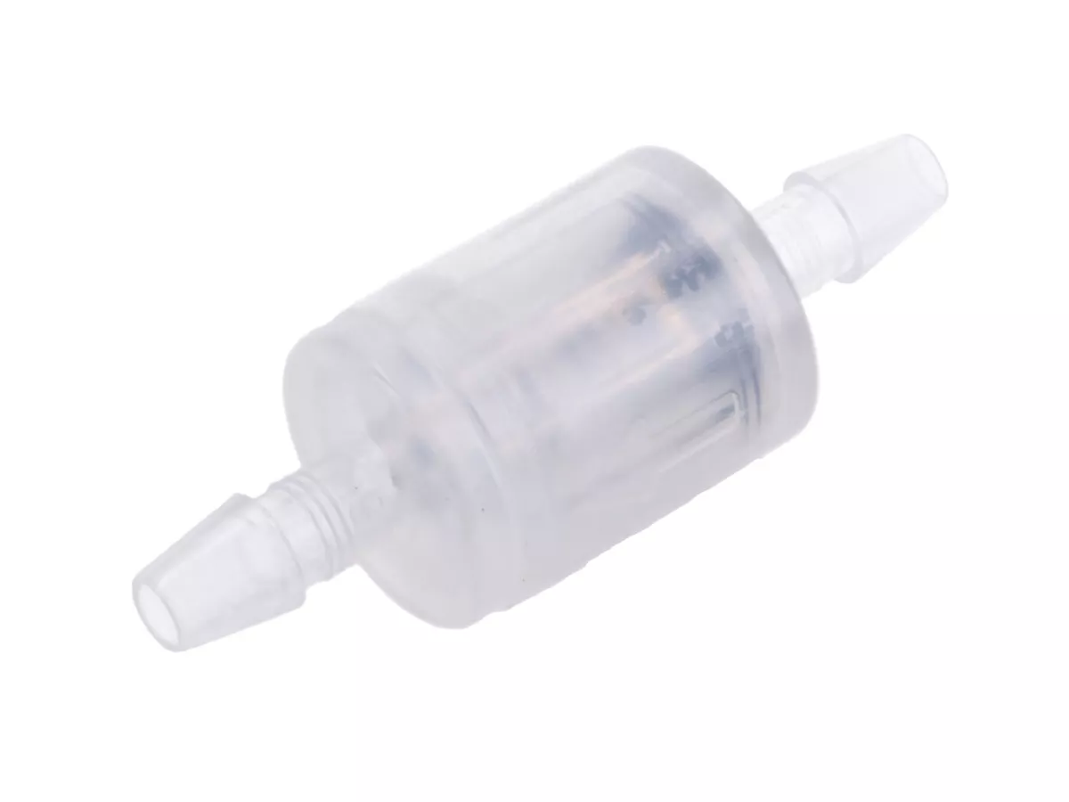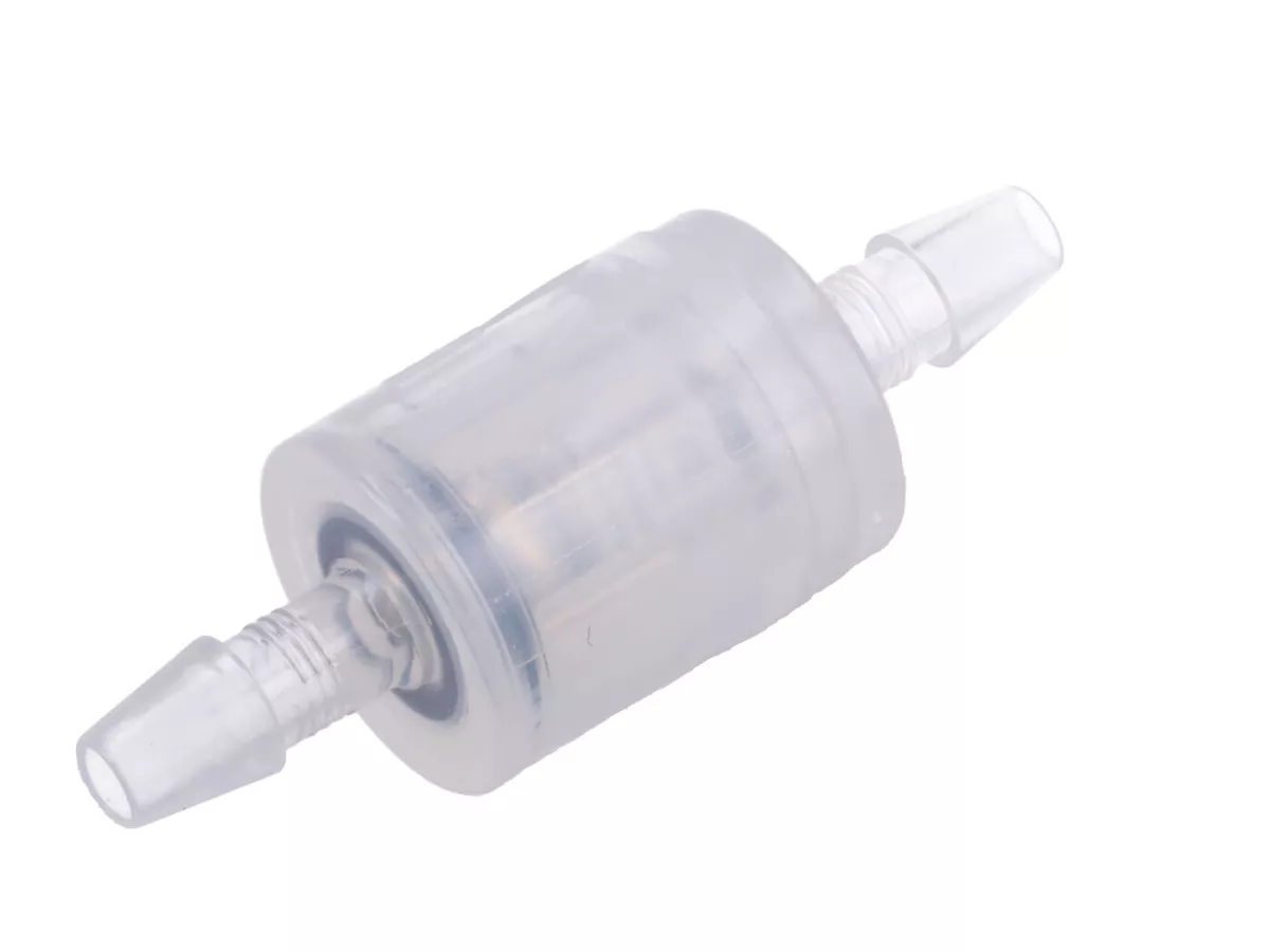 Rücklaufventil / Rückschlagventil aus ölbeständigem Kunststoff mit 3,6mm Schlauchanschlüssen für verschiedene Anwendungsmöglichkeiten.