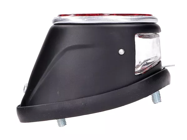 Klassisches ovales Rücklicht für Mofa mit dicker Gummi-Unterlage. Durch die Unterlage legt sich das Rücklicht recht gut an gewölbte Oberflächen an und ist aus diesem Grund universal für viele verschiedene Mofas oder Kleinkrafträder zu verwenden.