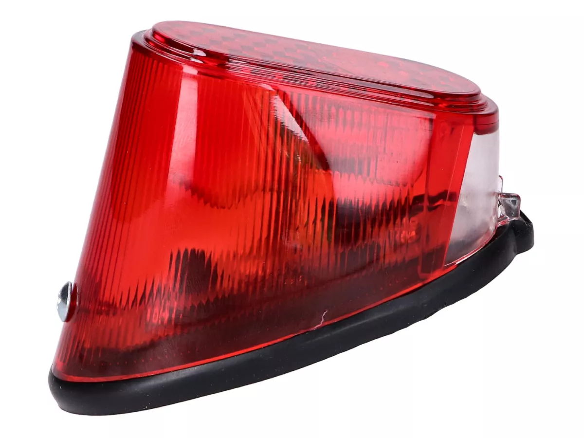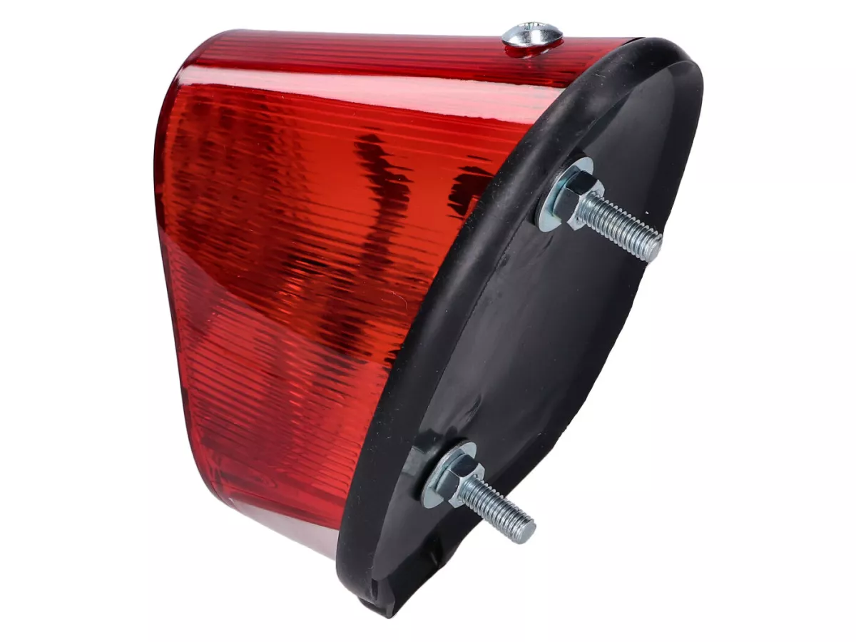 Klassisches ovales Rücklicht (ohne Bremslicht) für Mofas mit dicker Gummi-Unterlage. Durch die Unterlage legt sich das Rücklicht recht gut an gewölbte Oberflächen an und ist aus diesem Grund universal für viele verschiedene Mofas oder Kleinkrafträder zu verwenden.