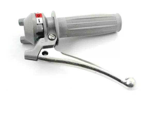 2-Gang-Schaltgriff mit Rillengummi und Aluminiumhebel, passend für Zündapp Bergsteiger M 25, M 50, ZR Z Modelle mit 2-Gang-Motor sowie Sachs 504 und 505 Motoren, verbaut bei Hercules Prima, M, KTM, DKW, Zündapp ZR, Bergsteiger und weiteren Modellen. Teilenummer: 434-17.704.