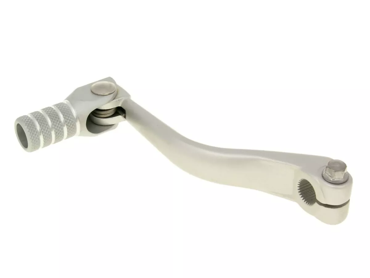 Silberfarbiger Schalthebel passend für Tomos Mofas und Mopeds. Der Hebel ist aus Aluminium gefertigt.