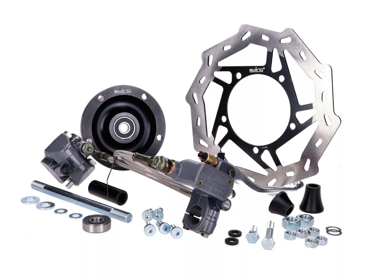 Bremsscheibe, Radachse, Radnabe, Distanzhülsen und Befestigungsmaterial wurden von der Qualitätsmarke swiing – swiss ingenious hergestellt.