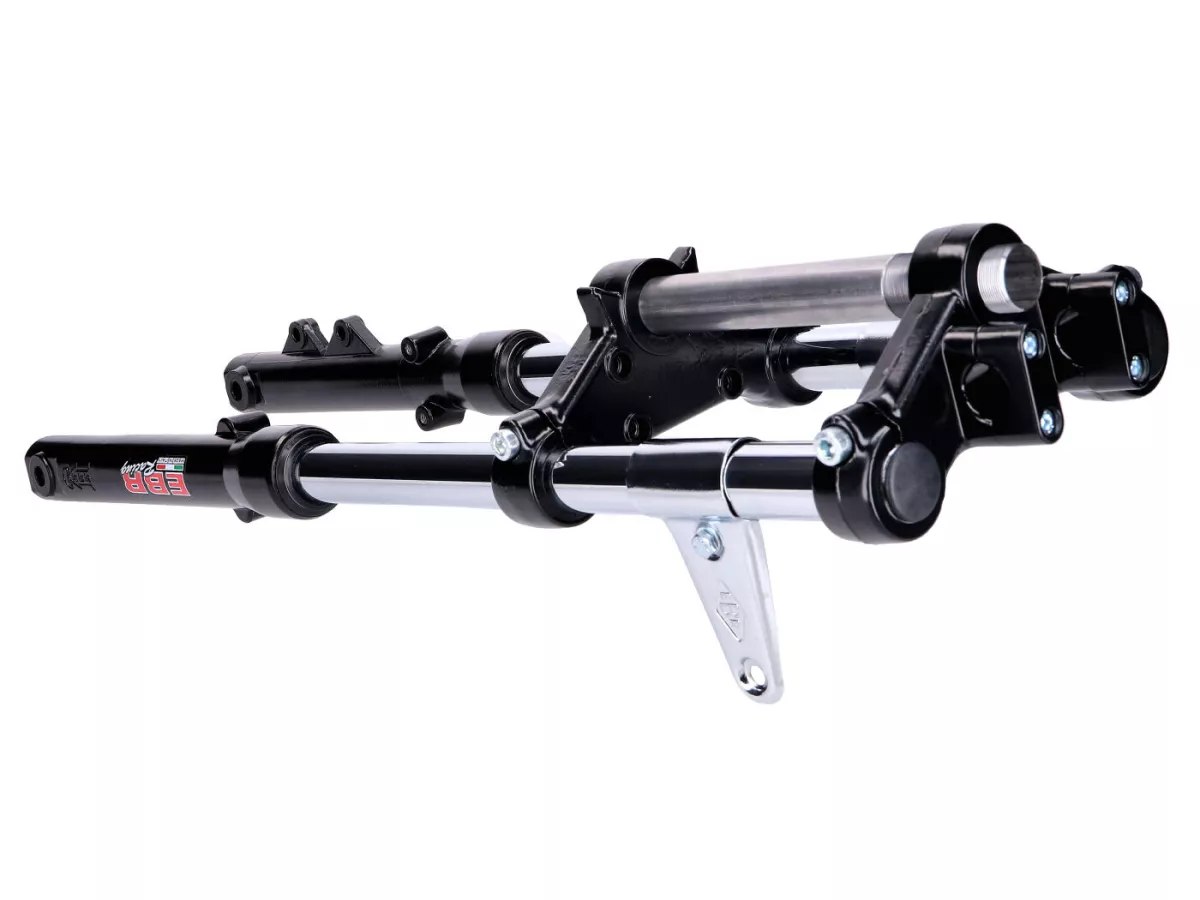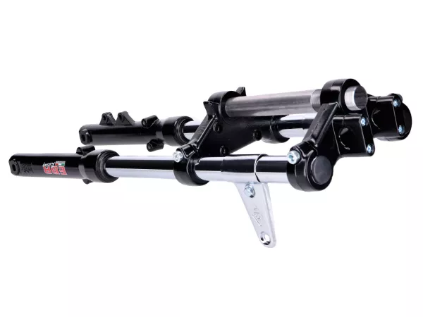 Scheibenbremsen-System passend für Puch Mofas mit 5-Stern-Gussfelge. Das Set besteht aus qualitativ sehr hochwertigen und passgenauen Komponenten der Marke swiing sowie einer EBR Harry Telegabel.