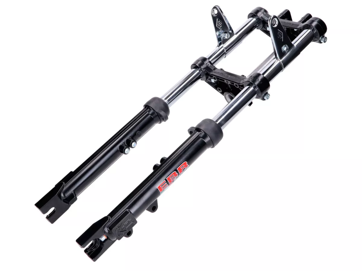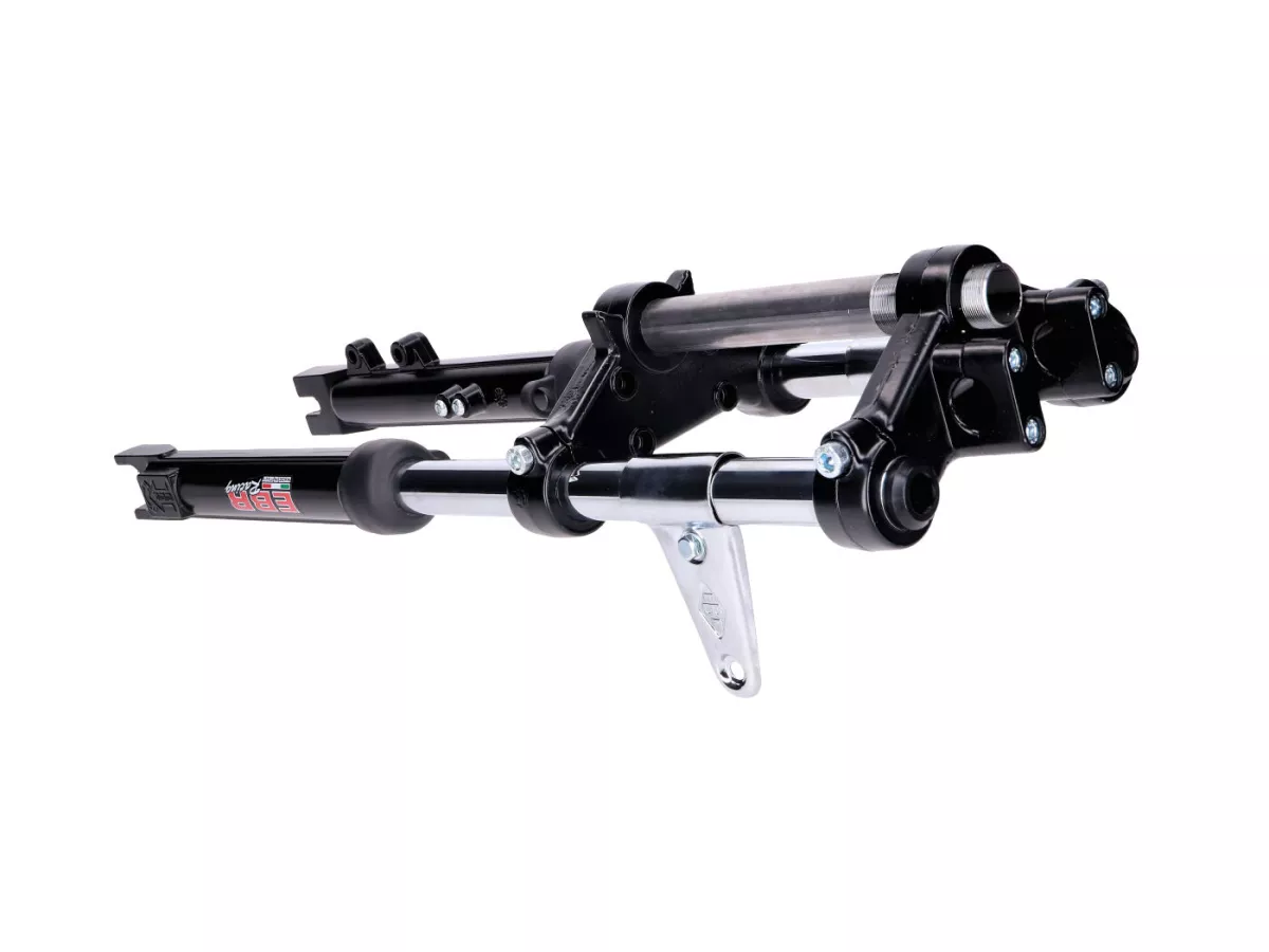 Scheibenbremsen-System passend für Puch Mofas mit 5-Stern-Gussfelge. Das Set besteht aus qualitativ sehr hochwertigen und passgenauen Komponenten der Marke swiing sowie einer hydraulischen EBR Telegabel.
