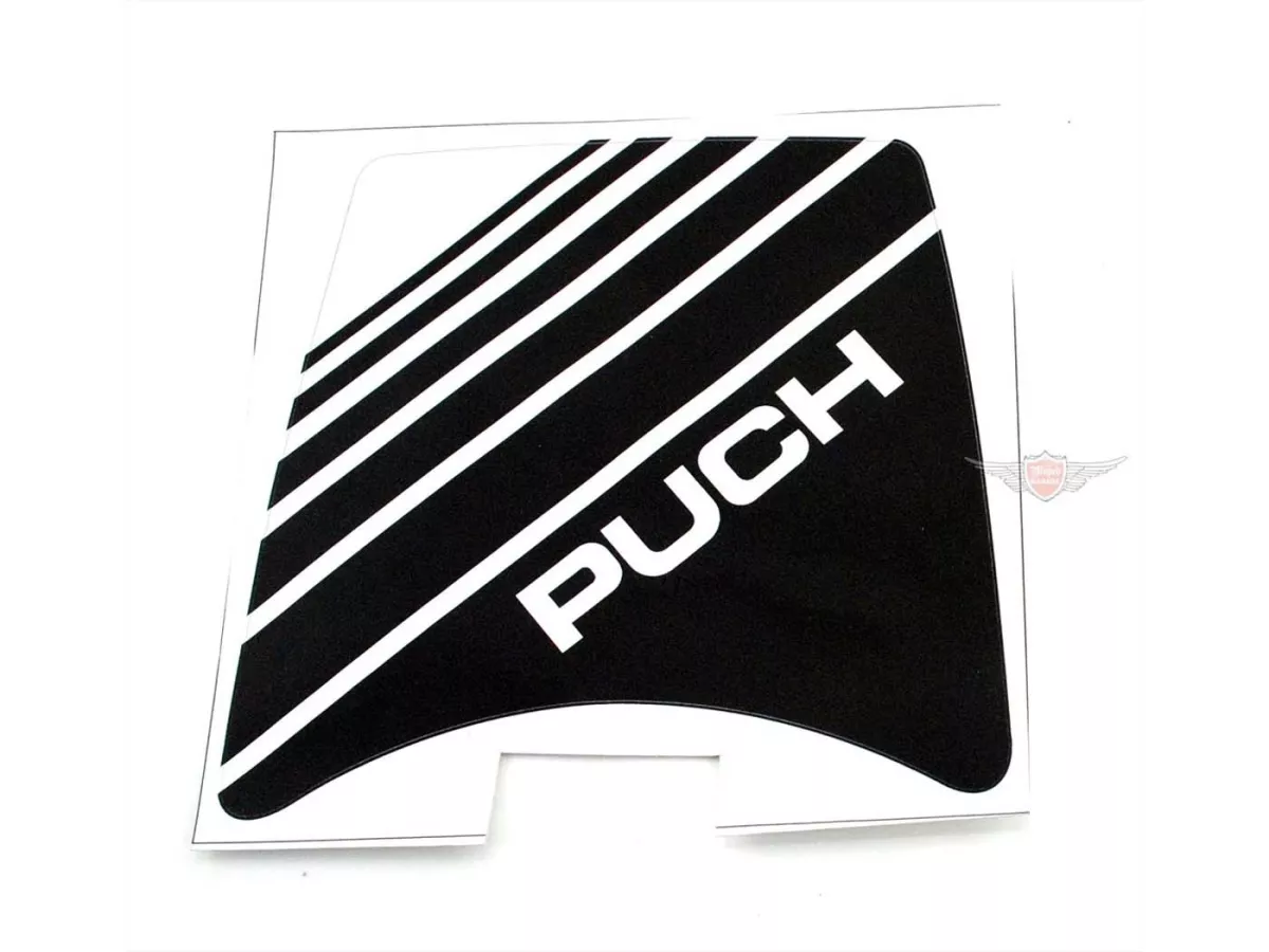 Scheinwerfer Verkleidungs Aufkleber, Schwarz Weiß, H: ca. 105mm, B: ca. 120mm, passend für Puch Maxi mit Scheinwerfer Verkleidung.
