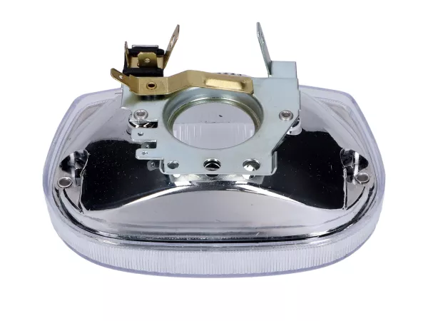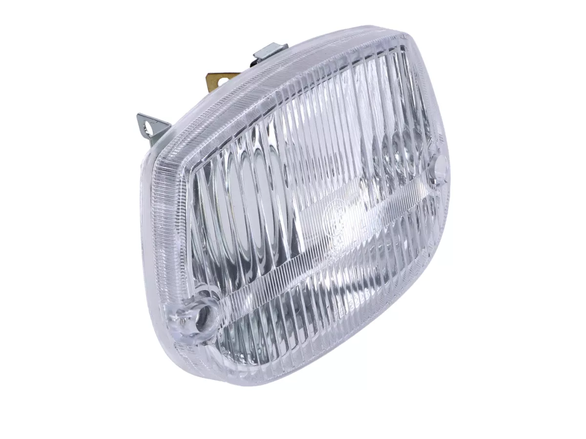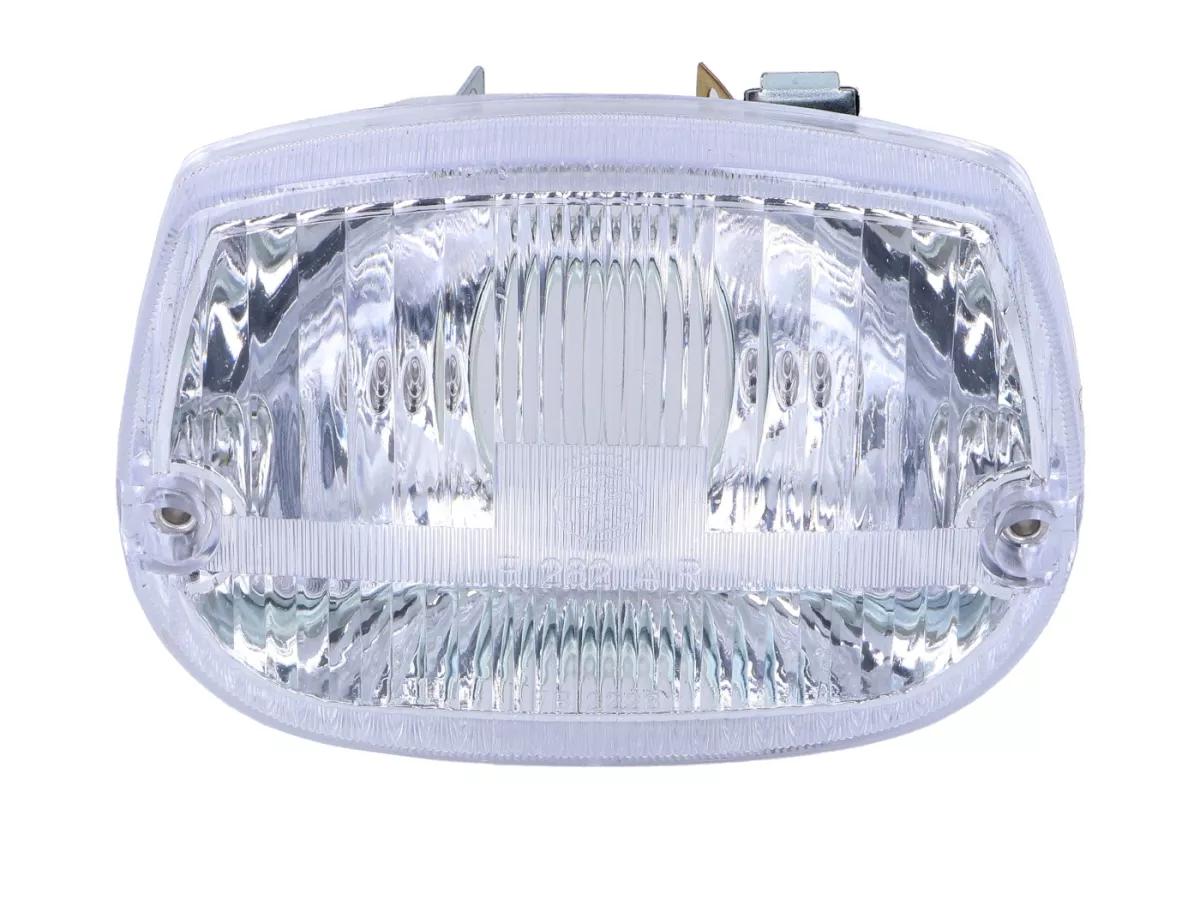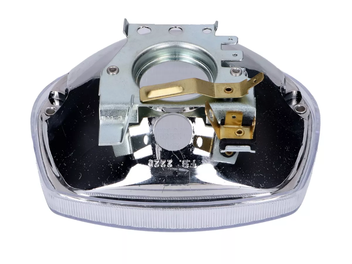 Großer Scheinwerfereinsatz (ohne Leuchtmittel) für Piaggio Vespa Modelle Ciao, Citta und PXV mit klassischem, ovalen Runddesign und einem Durchmesser von ca. 146 mm. Dieser Scheinwerfer entspricht den originalen Spezifikationen der genannten Modelle und ist mit den herkömmlichen P26s-Leuchtmitteln kompatibel. Die robuste Ausführung gewährleistet eine langlebige Funktionalität und optimale Lichtverteilung für sichere Sicht bei Nachtfahrten.
