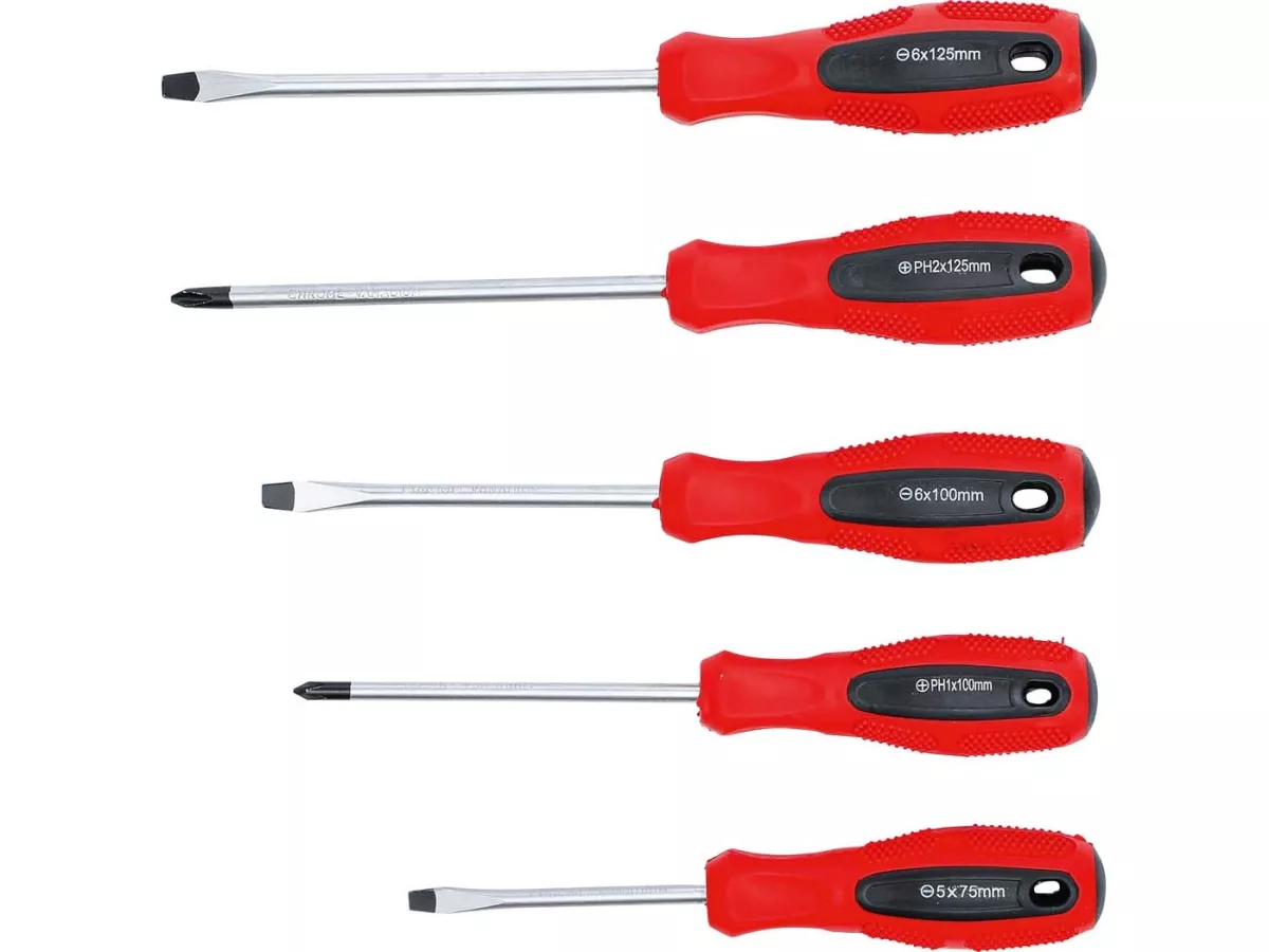 5-teiliger Schraubendreher Satz mit Schlitz- und Kreuzschlitz-Antrieb.