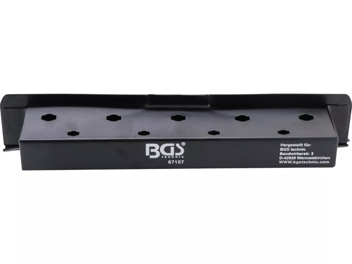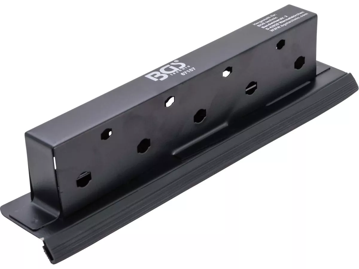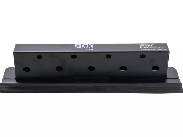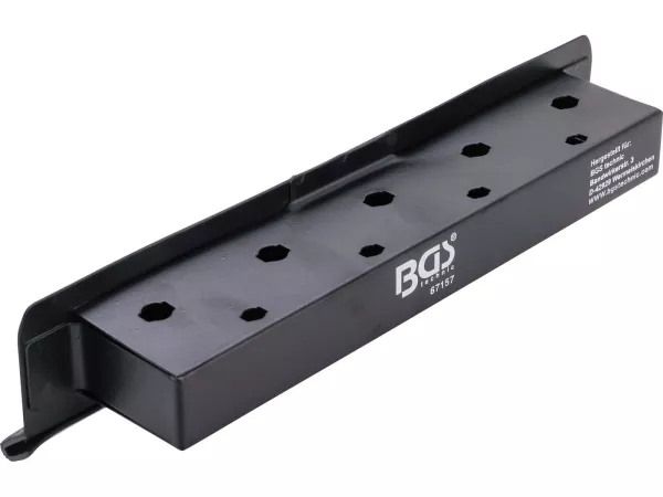 Der Halter bietet Platz für 5 Schraubendreher mit einem Klingendurchmesser von maximal 9,5 mm und für 4 Schraubendreher mit einem Klingendurchmesser von maximal 7,5 mm. Insgesamt finden 9 Schraubendreher Platz.