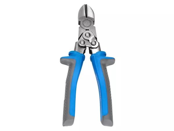 Die Schneidebacken sind für eine bessere Hebelkraftwirkung diagonal zentriert. Durch den Hebel-Mechanismus erhöht sich der Schneidedruck um 50% im Vergleich zu herkömmlichen Seitenschneiden. Der Seitenschneider kann mittels Sperrbügel verriegelt und somit sicher verstaut werden. Weiche Formgussgriffe mit Abgleitschutz für hohen Bedienkomfort. Gesamtlänge 200mm.