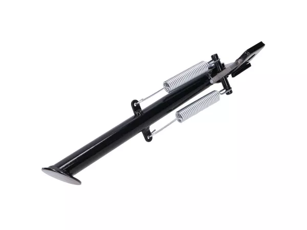 Schwarzer Seitenständer mit 2 Federn zur Montage an der Hinterachse passend für Simson Moped S50, S51, S70, KR51/1 oder KR51/2 Schwalbe.