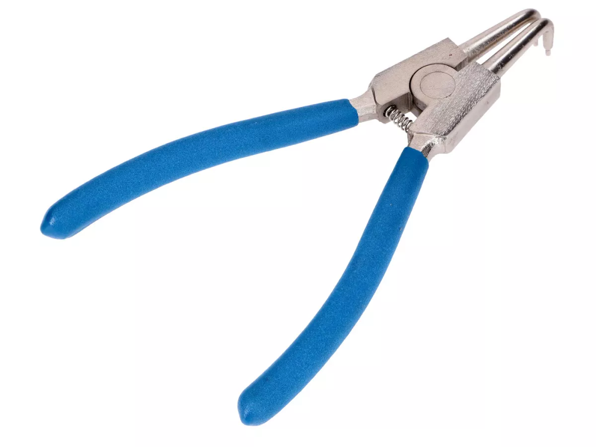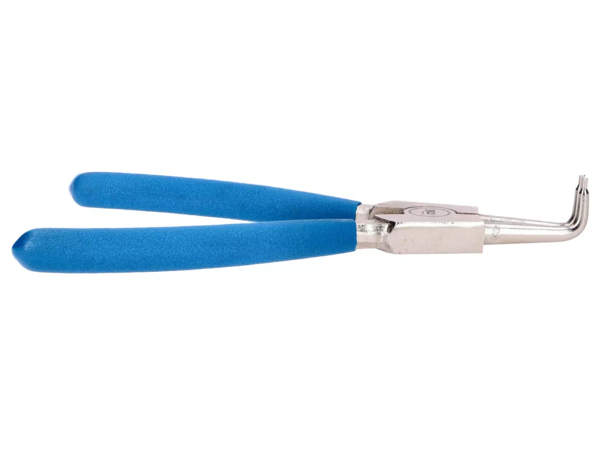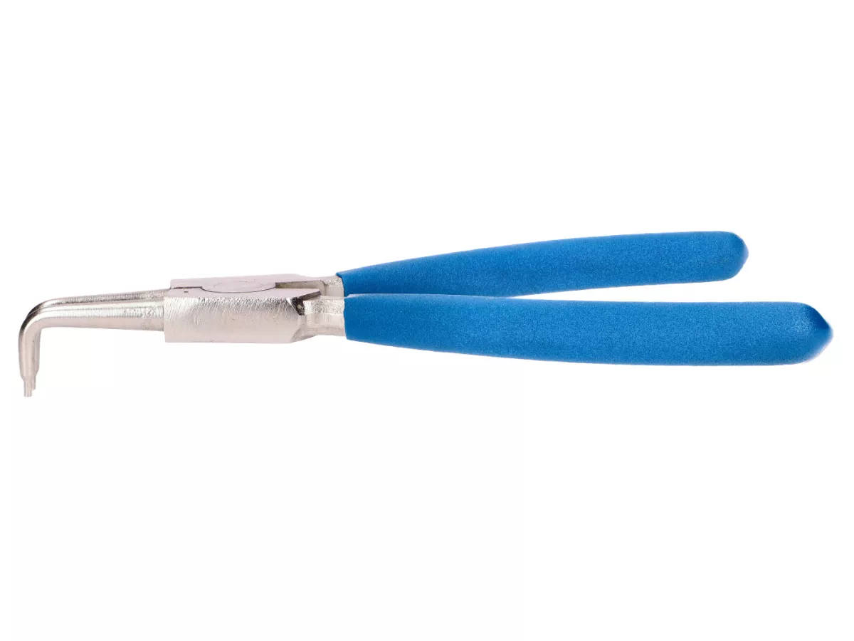 Eine abgewinkelte Sicherungsringzange für Außenringe in Bohrungen oder Nuten. Aus vergütetem Chrom-Vanadium-Stahl für hervorragende Leistung und Haltbarkeit. Sollte in keiner Werkstatt fehlen! Der Griff ist doppelt PVC-beschichtet und bietet super Bedienkomfort und eine sichere Zangenführung.