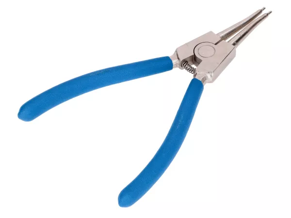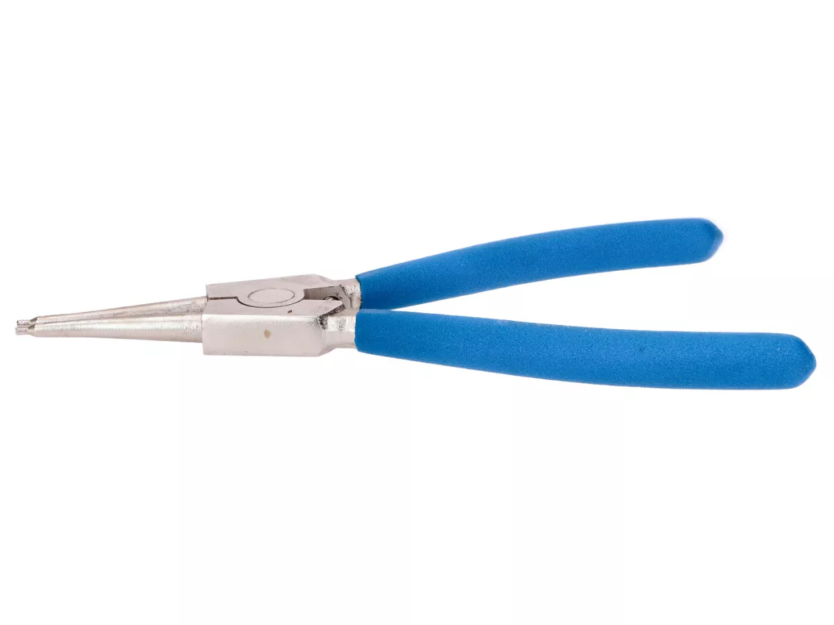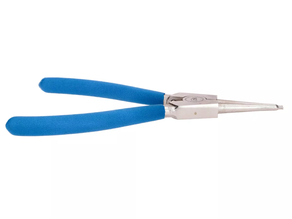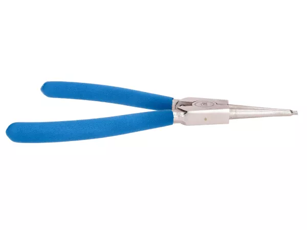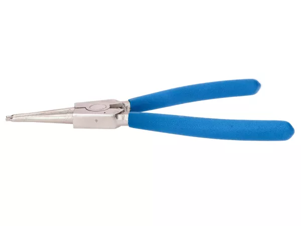 Eine Sicherungsringzange für Außenringe in Bohrungen oder Nuten. Aus vergütetem Chrom-Vanadium-Stahl für hervorragende Leistung und Haltbarkeit. Sollte in keiner Werkstatt fehlen! Der Griff ist doppelt PVC-beschichtet und bietet super Bedienkomfort und eine sichere Zangenführung.
