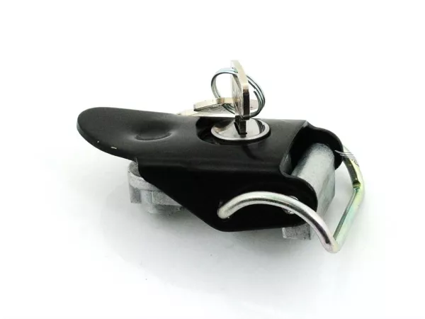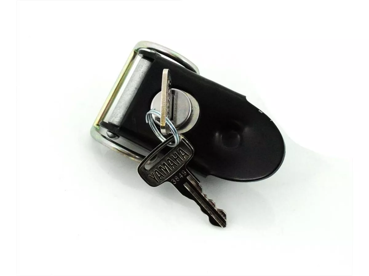 Sitzbankschloss inklusive zwei Schlüsseln mit Yamaha-Aufschrift passend für Yamaha DT 50 M und RD 50 M.