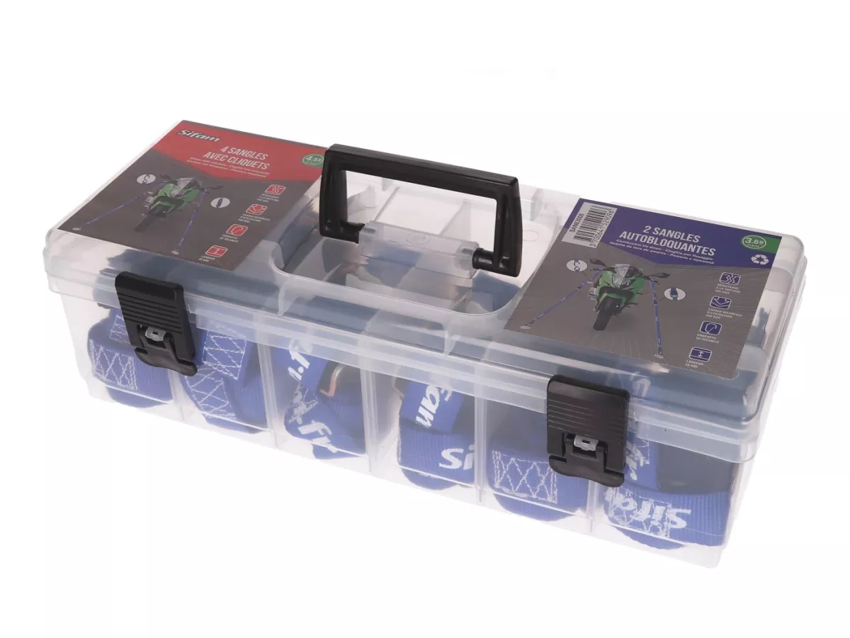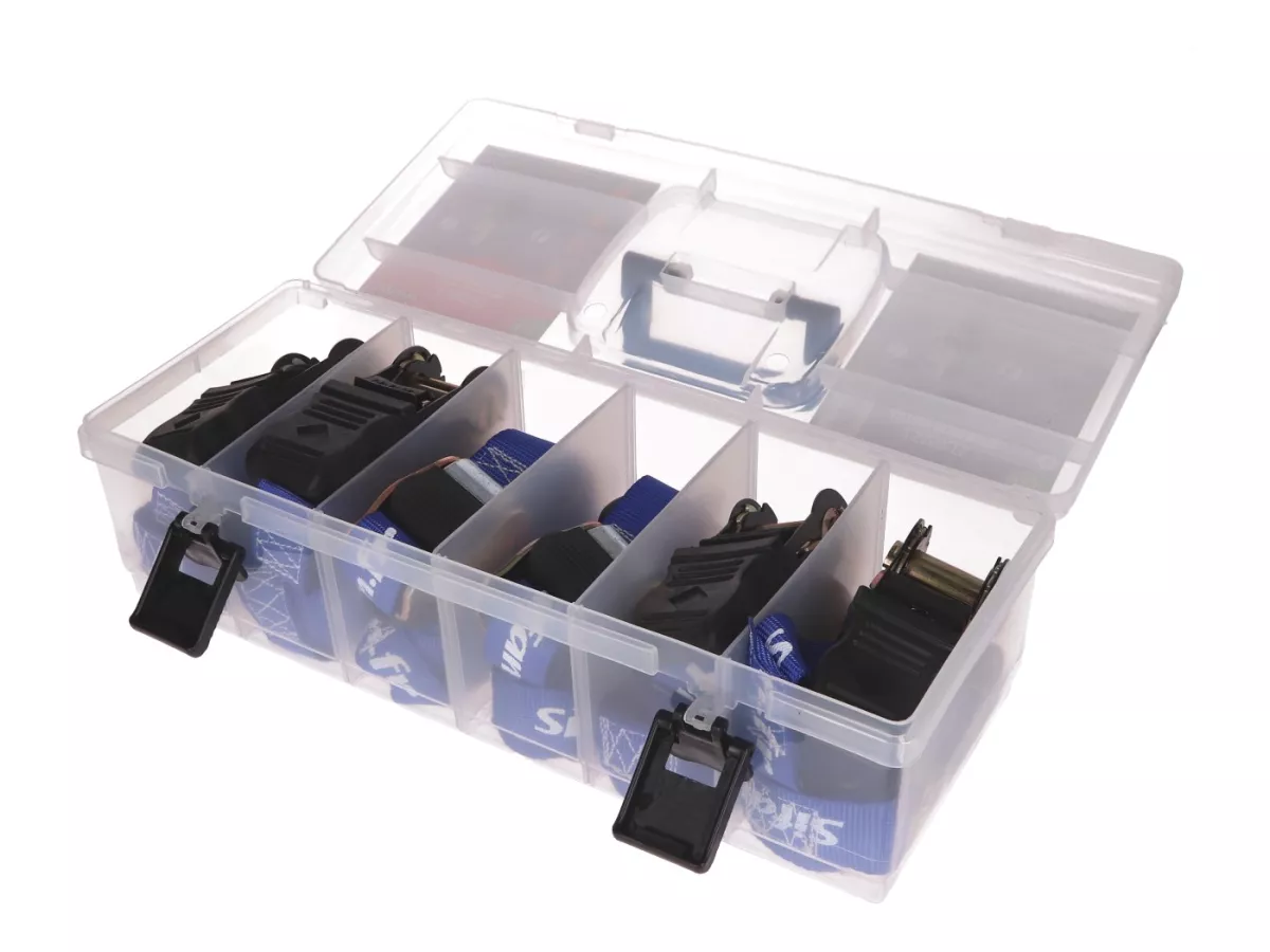 • 4 Stück 25mm x 4,5m mit Ratsche (Zugfestigkeit 680kg/ max. Nutzlast 340kg)