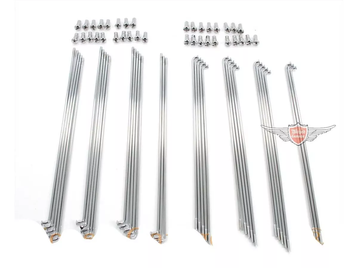 Kompletter Satz Chrom Speichen mit Nippel (36 Stück) passend für Puch MS 50 Moped mit Halbnaben Felgen. Speichen in Top Qualität, Länge 18 x 196mm und 18 x 205mm, Dicke 2,6mm. Geeignet für Vorder- oder Hinterrad.
