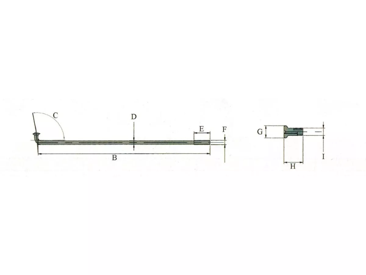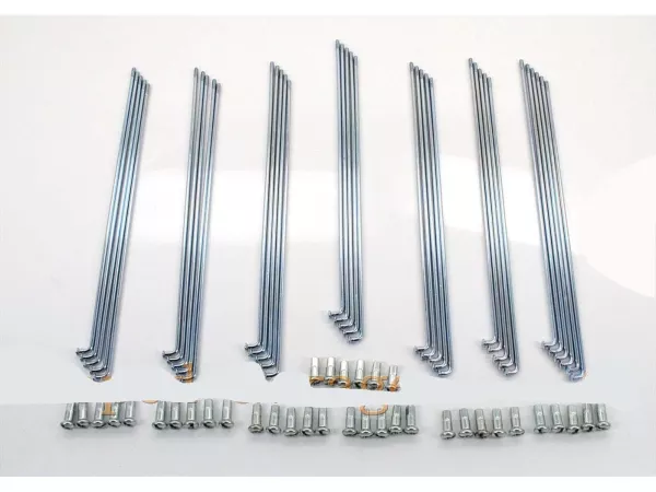 Kompletter Satz Chrom Speichen mit Nippel (36 Stück) passend für Moped Mokick Mofa Roller und Crescent Modelle 1134, 1137, 1138, 1140, 1142, 1148, 1149, 1150, 1151 mit 215mm Länge. Technische Details: B: 215mm, C: 90 Grad, D: 2,6mm, E: 12mm, F: 2,85mm, G: 8mm, H: 13mm, I: 5mm.