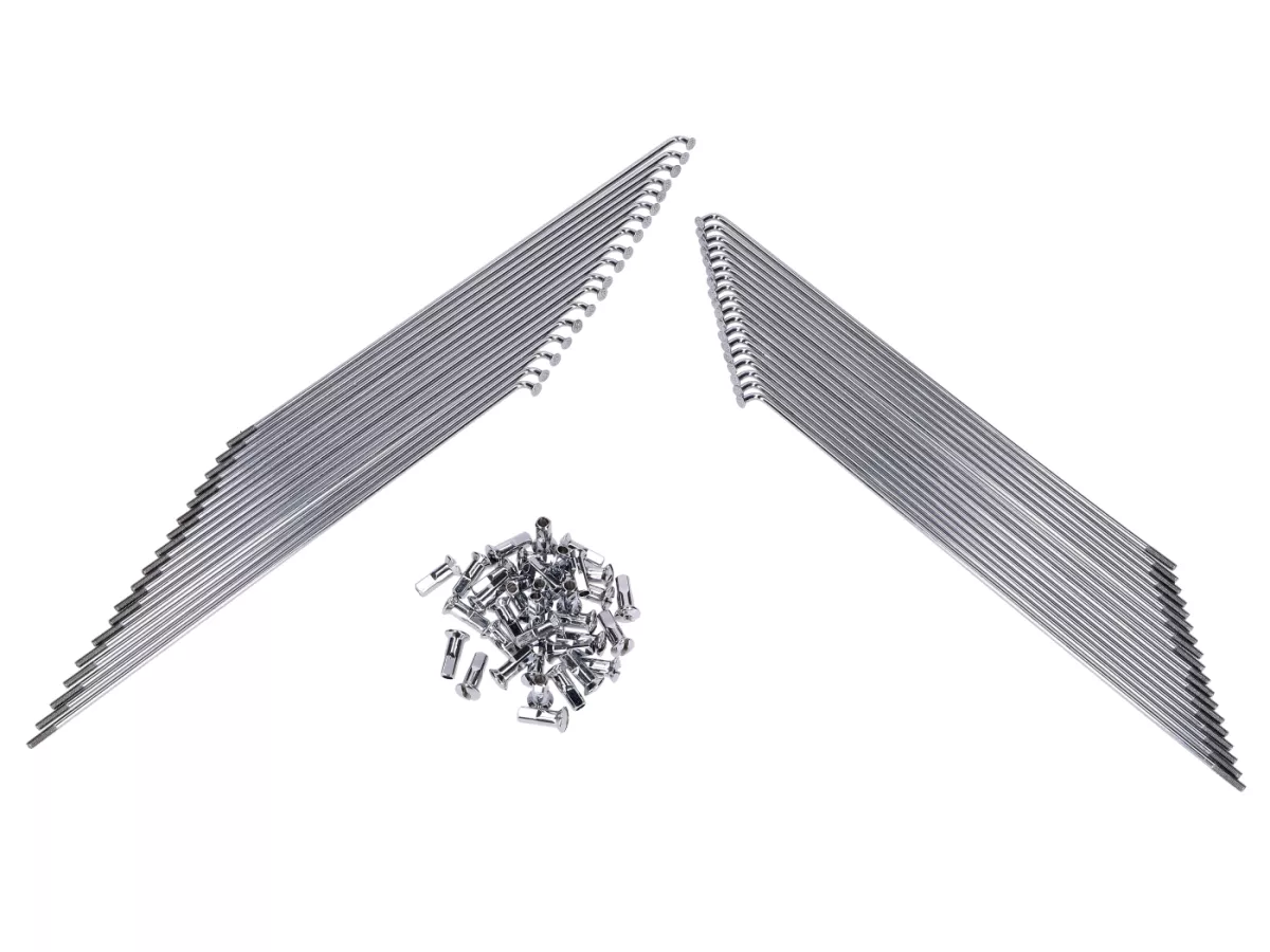 Dieser Speichensatz vorne ist speziell gefertigt für das Zündapp Automatic Mofa Modell 442. Er gewährleistet die originalgetreue und stabile Verbindung der Felge zur Nabe des 17-Zoll-Vorderrads. Gefertigt aus hochwertigem Stahl, bietet der Satz optimale Festigkeit und Langlebigkeit unter den typischen Einsatzbedingungen des luftgekühlten 49 cm³ Zweitaktmofas mit automatischem Antrieb und einem Leergewicht von ca. 47 kg. Der Speichensatz ist maßgeschneidert für die passende Bereifung 2 - 17 Zoll und entspricht den technischen Anforderungen des Zündapp 442-17 Automatic Mofas, Baujahr 1972.