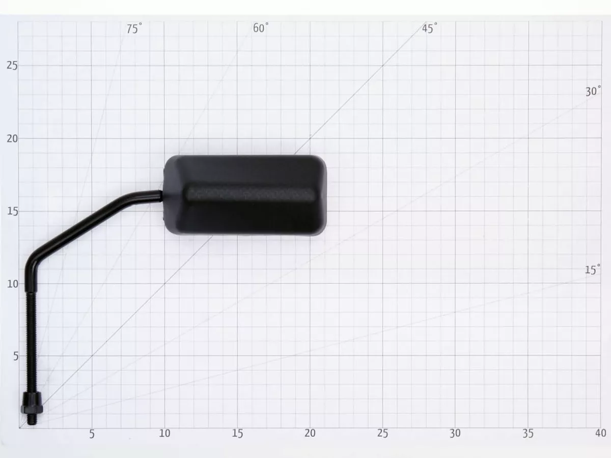 Spiegel F1 im Carbon-Look mit langer Halterung zur Links- sowie Rechtsmontage. Der Spiegel verfügt über ein Rechtsgewinde, das durch den beiliegenden Adapter auf Linksgewinde umgerüstet werden kann.