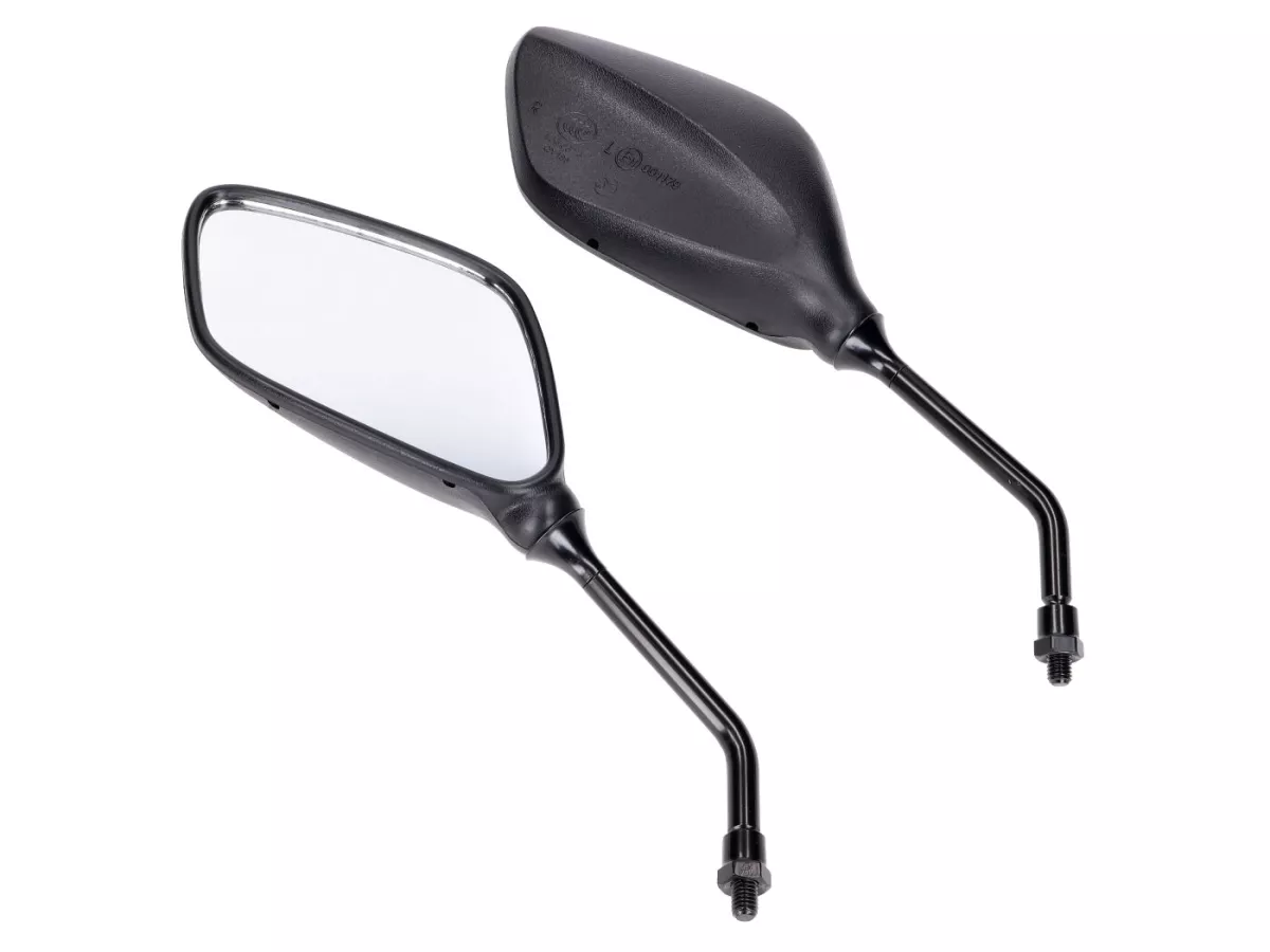 Geliefert werden 1 linker und 1 rechter Spiegel mit M8 Gewinde. Da einige Fahrzeughersteller auf der rechten Lenkerseite ein Linksgewinde für die Spiegel verwenden (Yamaha, MBK u. a.), bieten wir 2 verschiedene Sätze an: Entweder mit rechts/rechts [RR] Gewinde oder mit rechts/links [RL] Gewinde.