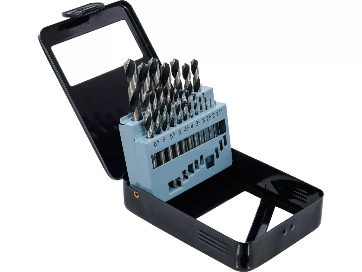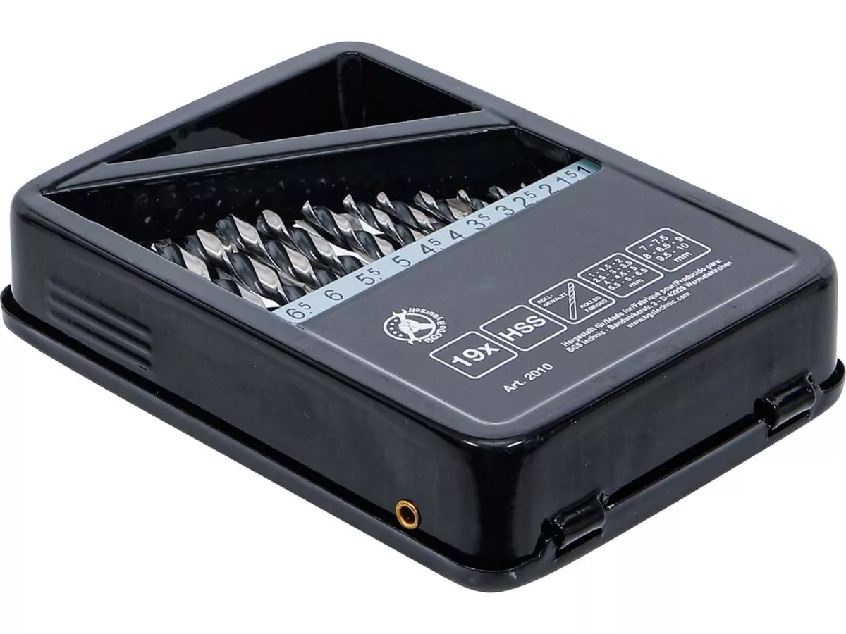 19-teiliger Spiralbohrer Satz aus HSS-Stahl in verschiedenen Größen von 1mm bis 10mm. Inklusive Aufbewahrungsbox aus Metal.