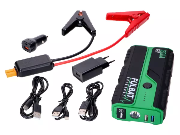 Multifunktionales Starthilfegerät Fulboost Lithium Booster mit 1600A von Fulbat für 12V Fahrzeuge mit bis zu 7.0L Benzin- und 6.0L Dieselmotoren.