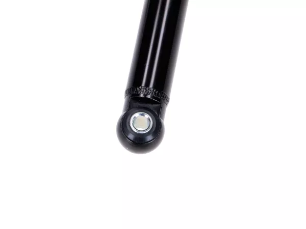 Ein Satz (2 Stück) Chromhülsen Federbeine in Schwarz, passend für Kreidler Florett K54 Eiertank Moped Mokick. Länge von Auge zu Auge ca. 365mm, Buchsen 10mm. Chromhülse Länge ca. 200mm. Verstärkte Soziusfeste Version, mit Betriebsgeräuschen.