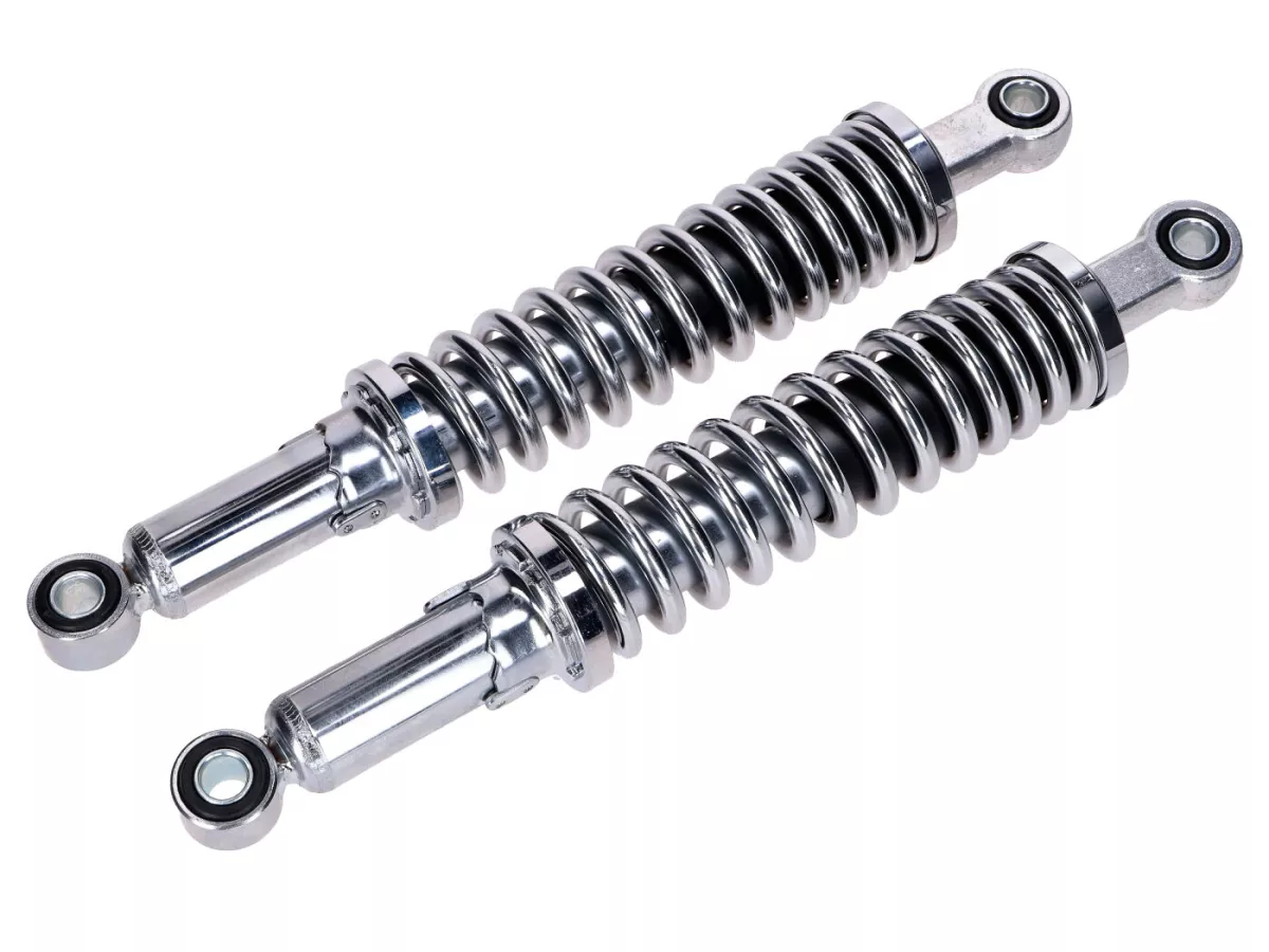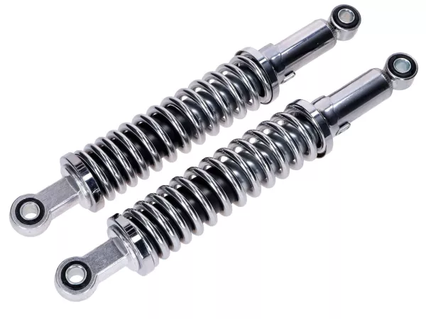 Ein Satz 335mm Chrom Sport Federbeine, hydraulisch gedämpft und 5-fach einstellbar, passend für Honda MB, MT, Zündapp, Hercules, Kreidler, Puch und viele weitere Modelle.