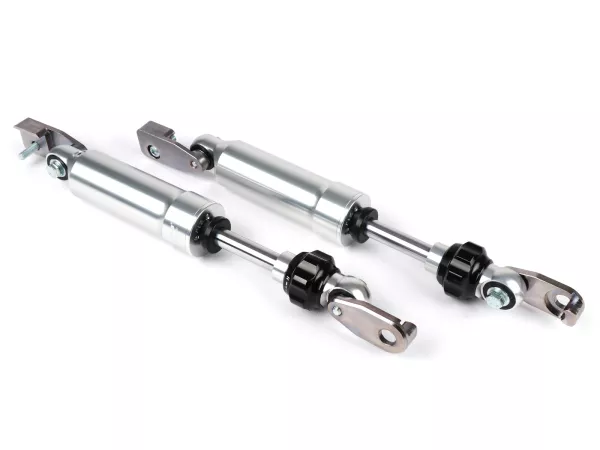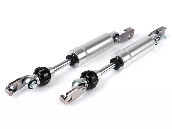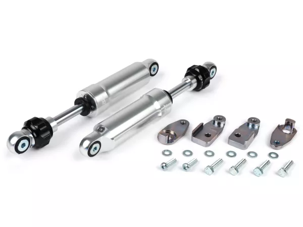 Das BGM Pro F16 Stoßdämpfer Set für Piaggio Ciao Durch die Stoßdämpfer von BGM mit ihrer 16 fach regelbaren Zugstufenverstellung kann man das Fahrverhalten seiner Ciao individuell anpassen und einstellen.