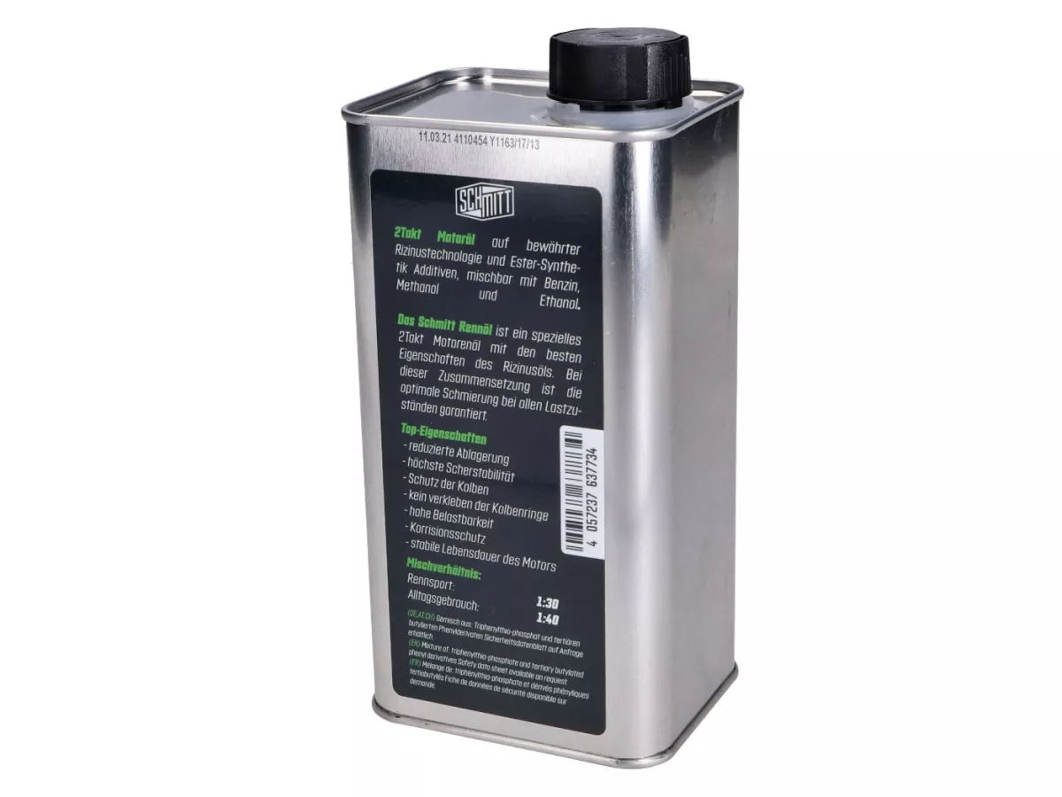 Er ist wieder da, der Geruch der 80er Jahre! Zum echten 2-Takt Sound gehört auch der passende Duft. Sechsmal 1 Liter pures 2-Takt "Eau-de-toilette". Dieses vollsynthetische Schmitt Rizinus 2-Takt Mischöl riecht nicht nur gut, sondern bietet auch technisch viel. Auf modernsten Synthesetechnologien basierend, in Deutschland hergestellt, ist es ein Highend-Schmierstoff für getunte und nicht getunte 2-Takt Motoren.