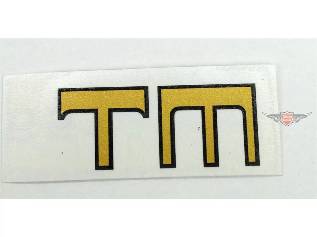 Tankaufkleber TM Gold, schwarzem Rand, passend für Kreidler Florett/andere Modelle, hochwertiger Nachbau, Überlackierung unnötig, Maße: 45mm x 20mm.