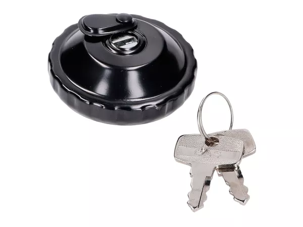 Abschließbarer schwarzer Tankdeckel mit Bajonettverschluss und 2 Schlüsseln passend für Mofa / Moped wie Puch Maxi, Starlet und Tomos.