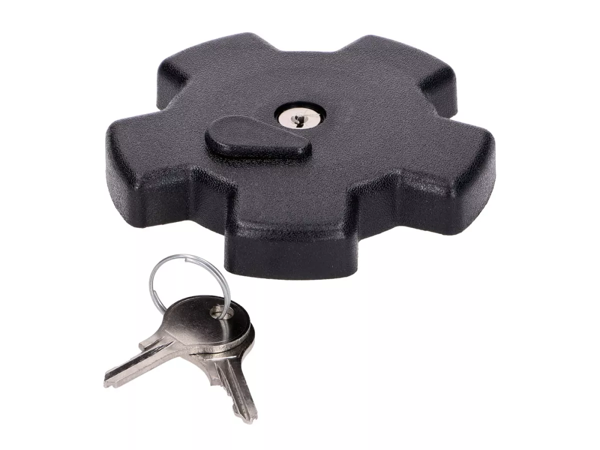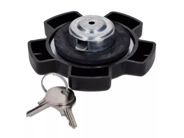 Stern Tankdeckel des Erstausrüsters CAWI, abschließbar mit 2 Schlüsseln, passend für Suzuki TS 50 K, GT 80 L, GT 125, 185, DR Mofa, Mokick, Motorrad und Mopeds mit 35mm Bajonett Tankdeckel. Hergestellt in Deutschland.