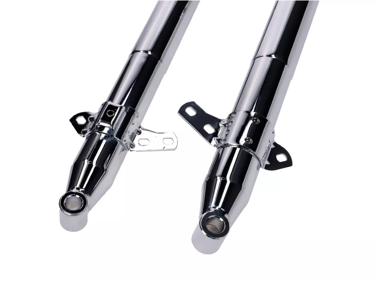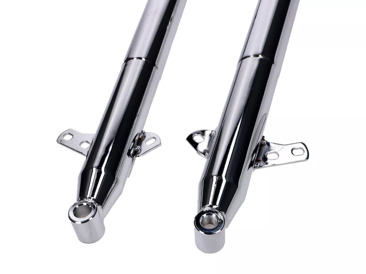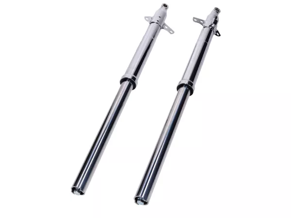 Rechter und linker Telegabelholm für die Bremsseite passend für Zündapp Typ 517 C50, KS50 und GTS50. Die Gabelholme werden einbaufertig geliefert.