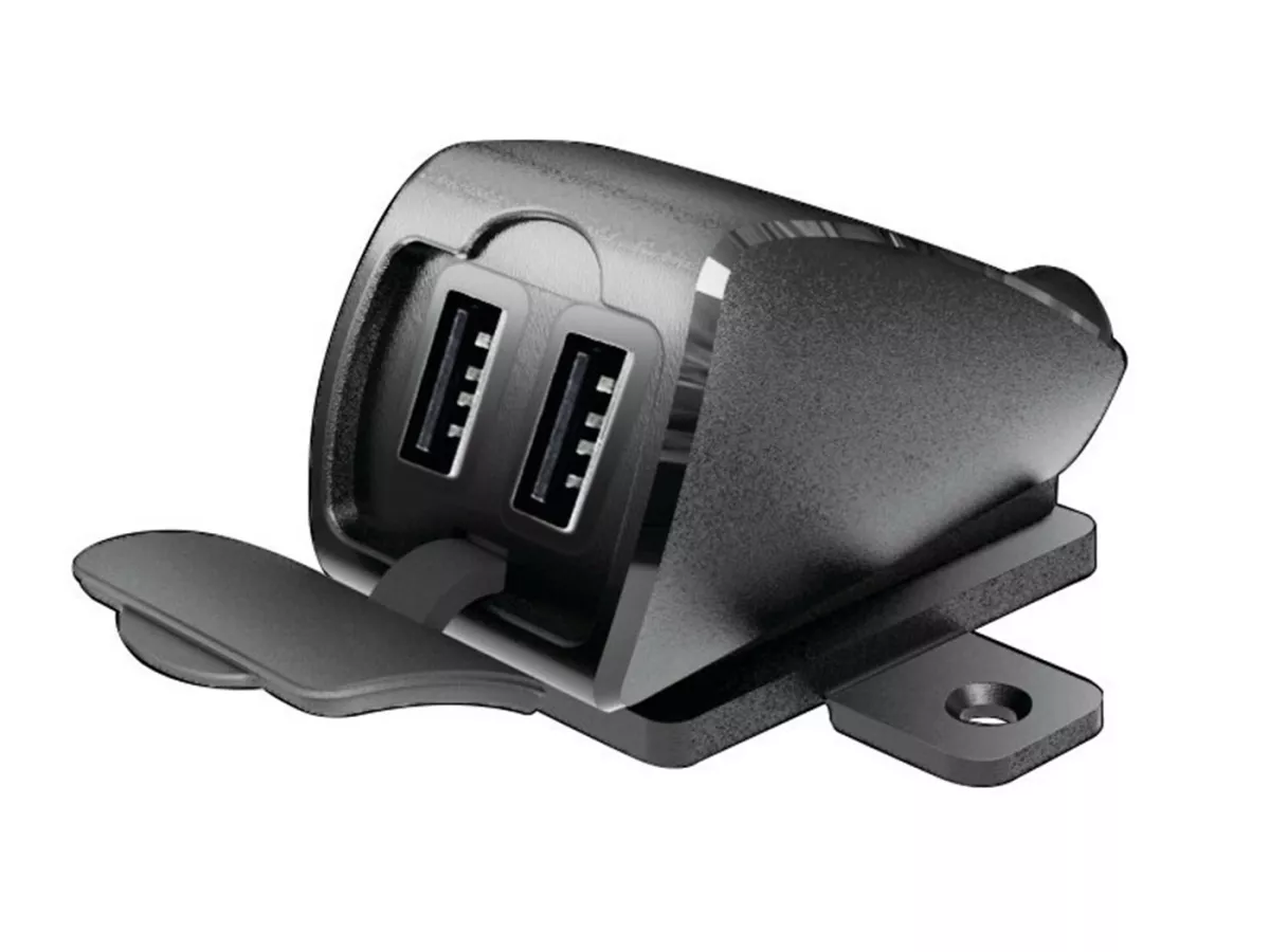 Wasserfestes Lampa Fix-Trek-2 USB-Ladegerät zur Befestigung mit Schrauben oder doppelseitigem Klebeband. Ultra Fast Charge, 5400mA, 12/24V.