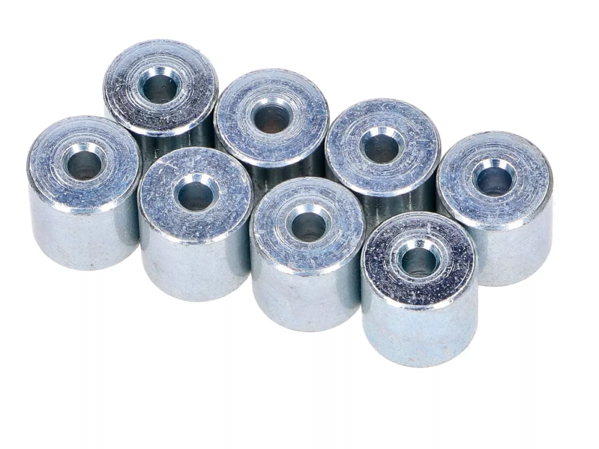 Variomatik Rollen Set bestehend aus 8 Rollen ohne Kunststoff Kappen, passend für Piaggio Vespa Ciao, Bravo, Boxer, Grillo, Boss und Si Mofa Moped mit Variomatik. Hergestellt in Italien, Top Qualität, entspricht den Originalen.