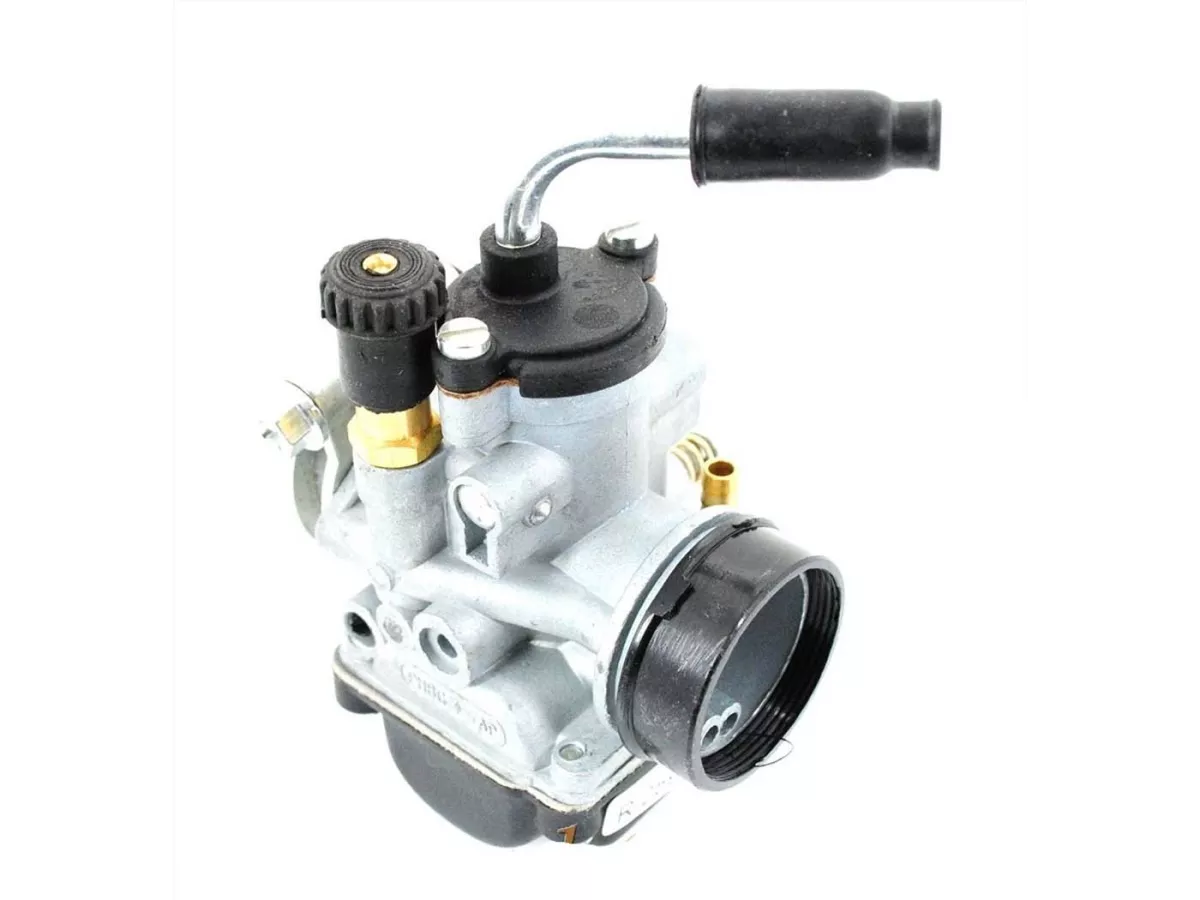 Ein komplett einbaufertiger Tuning Vergaser mit manuellen Choke für Gemischschmierung ohne Anschluss für Mischöl, geeignet zum Tuning für Deine Moped, Mokick und Mofa.