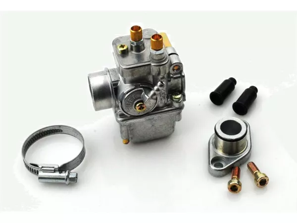 Bing 17/15/1102 Vergaser, 70 Km/h Variante, passend für Simson SR 50 SR 80, Hercules Supra, Prima GT GX, Zündapp GTS CS CX, Kreidler Mustang, KTM Bora, DKW Rixe, Mofa, Moped, Mokick. Maße: 23mm Ansaug Stutzen Anschluss, 28mm Luftfilter Anschluss. Kaltstart Betätigung über Bowdenzug (Bowdenzug nicht im Lieferumfang enthalten). Komplett einbaufertig. Inkl. Gutachten zur Umrüstung von Simson BVF original Vergaser auf Bing Vergaser.