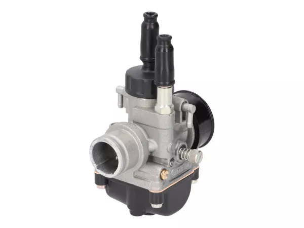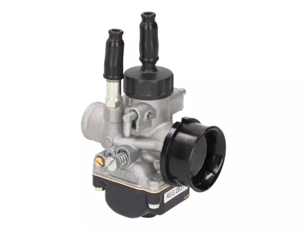 19mm Vergaser sind in der Regel ausreichend für alle 70ccm Tuningstufen. Diese silberfarbige Variante hat noch einen relativ neutralen Look. Einfach abzustimmender Vergaser in gewohnt hoher Dellorto Qualität. Für den Luftfilteranschluss auf 38mm wird ein schwarzer Adapter mitgeliefert.